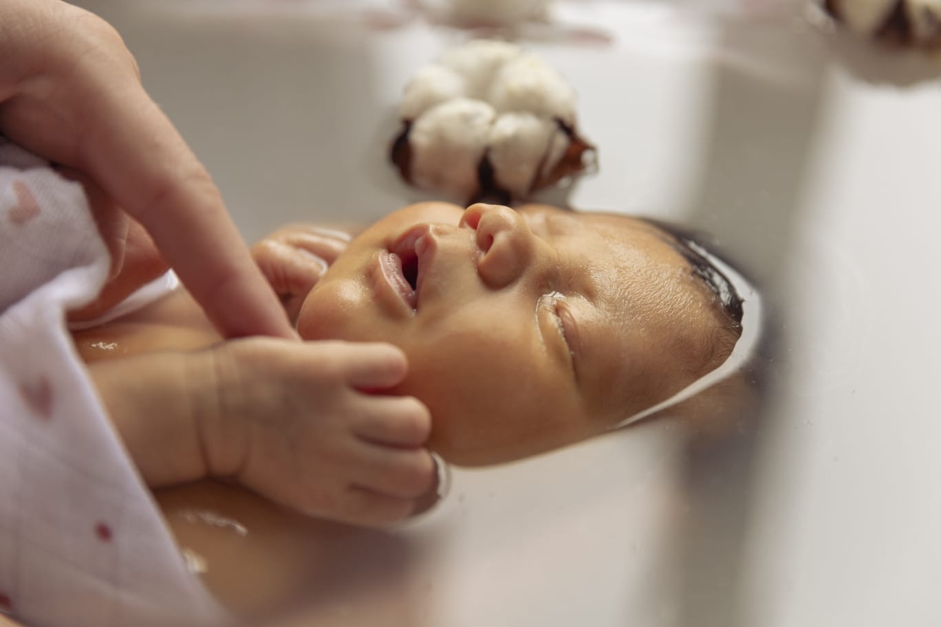 Lors du bain enveloppé avec L’âme & l’autre il sera possible en fonction de bébé que les parents prennent la main si ils le souhaitent. Pas de panique je suis la pour vous les parents !